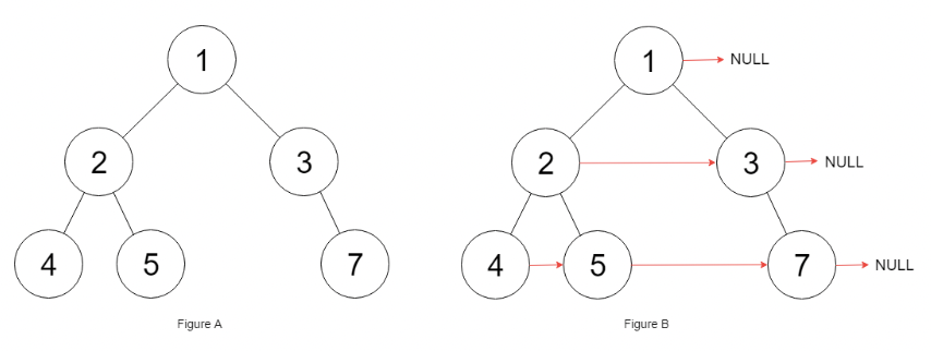 - 여기서 다음 오른쪽 노드가 없는 경우, next pointer는 NULL로 설정이 되어야 하며,