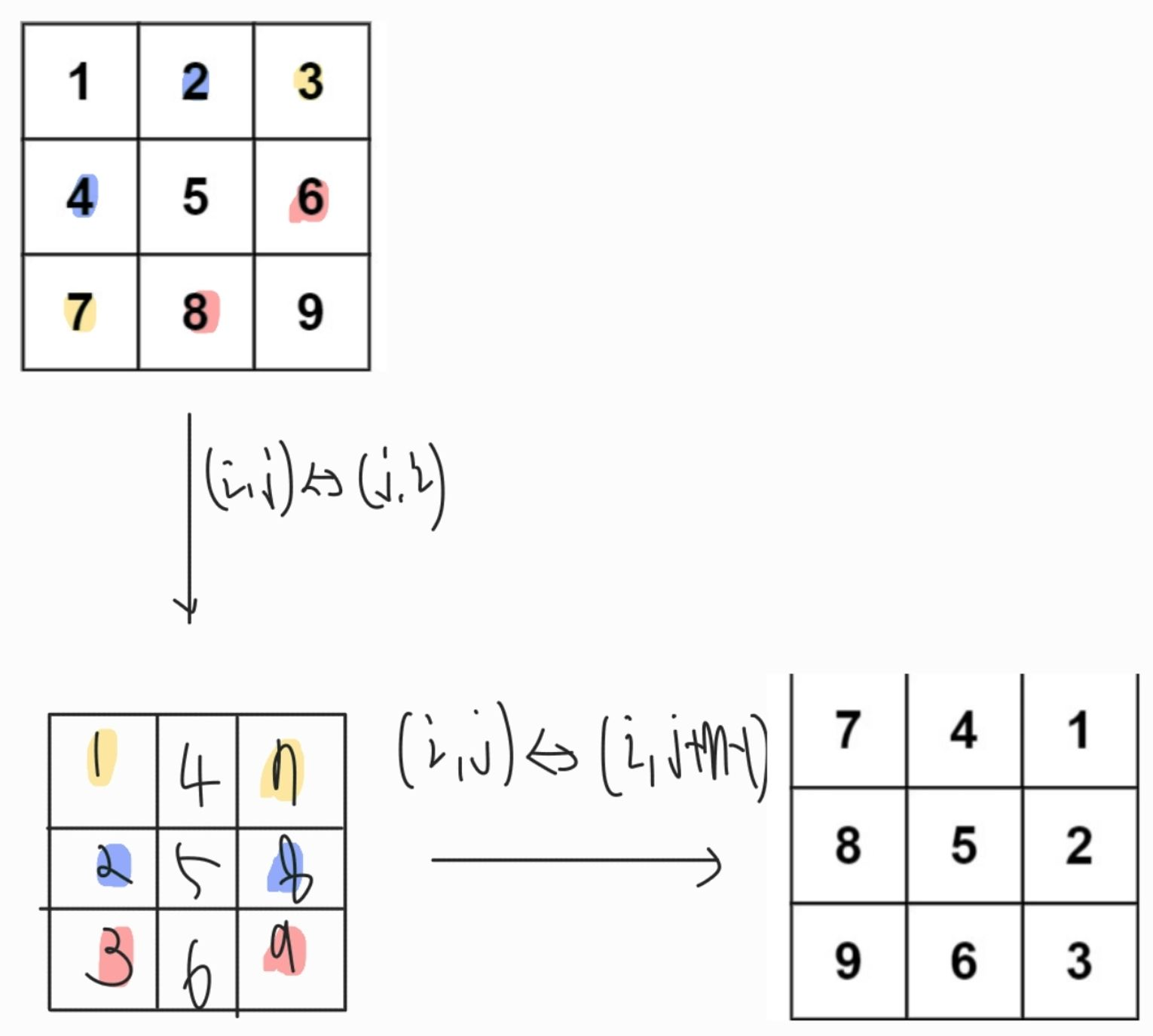 - 주어진 행렬을 시계방향으로 90도 회전하는 것