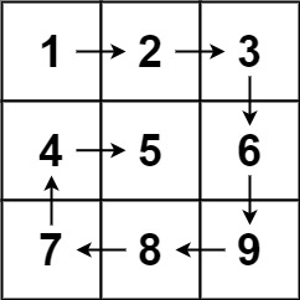 - 예시) matrix = [[1,2,3],[4,5,6],[7,8,9]] → [1,2,3,6,9,8,7,4,5] 반환